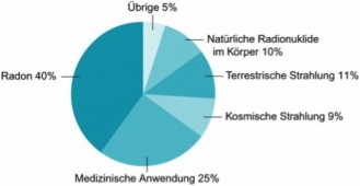 In der Schweiz beträgt der Anteil von Radon an der gesamten jährlichen Strahlenbelastung 40 %.